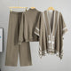 Women's Classic Knitted Warm Shawl Three-piece Set Autumn Winter Fashion Casual Outfit Abstract Pattern Long Sleeve Long Pants