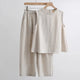 Women's Linen Cotton Blend Casual Set Short Sleeve Wide Leg Pants Two Piece Suit Summer New Style Bubble Sleeve Three Quarter Pants