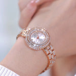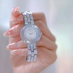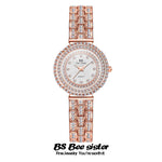 BS New Luxury Full Diamond Women's Watch FA1576 Quartz Fashion Alloy Strap Jewelry Clasp Round Dial Mineral Enhanced Glass