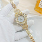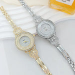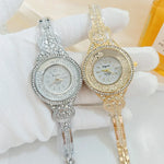 Elegant Diamond Embedded Quartz Watch Women's Sandflowery Water Diamond Watch Ladies Wristwatch Alloy Strap Pointer Display