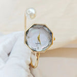 Elegant Pearl Embedded Diamond Women's Watch Fashionable Quartz Movement Alloy Strap Pointer Display Clasp Buckle Eight-Shape
