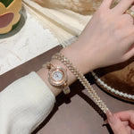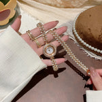 Fashionable Elegant Diamond Embedded Ladies Watch Versatile Trendy Gift Choice For Girls Quartz Movement Alloy Strap Round Dial