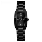 Fashionable Ladies Quartz Watch Waterproof Stainless Steel Band Couple Style Rectangular Dial Single Fold Clasp Buckle Wristwatch