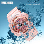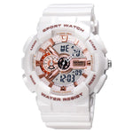 Multi-Functional Student Electronic Watch Waterproof Luminous Dual Core Men's Style Round Dial PU Strap Digital And Pointer Display