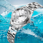 Skmei Ladies Stainless Steel Quartz Watch Fashionable Waterproof Wristwatch Casual Round Dial Single Fold Clasp Watch