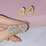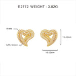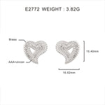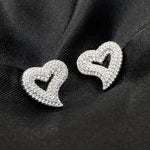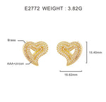Love Heart Stud Earrings Full Diamond Peach Heart Earrings High-Grade Zircon Copper Gold-Plated Earrings Female Stud Earrings Wedding the Dinner Party Wear