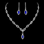 simple copper claw chain rhinestone royal blue horse eye earrings necklace set