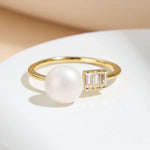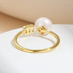 Women's 925 Sterling Silver Open Ring with 7-8mm Freshwater Pearl Minimalist Geometric Adjustable Design for Daily Wear Wedding Anniversary Gifts