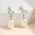 Women's Floral Elegant Freshwater Pearl Sterling Silver Earrings 7-9mm Oval Shape for Daily Wear Birthday Wedding Date