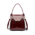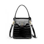 Lining Material: Leather Shape: Square Material: Two-Layer Cowhide,Genuine leather Bags Type: Tote Bag Closure Type: Flip Cover Style: Retro Fashion Element: Stone Pattern,Lock,Crocodile Pattern Size: Medium Strap Type: Double Shoulder Straps Weight: 1200g