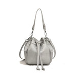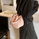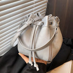 French Ladies Fashion Bucket Bag Spring Shoulder Handbag Trendy Crossbody Versatile PU Material Spliced Element