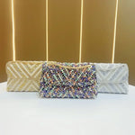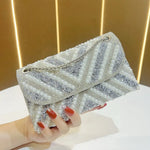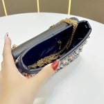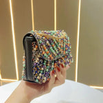French Vintage Pearl Rhinestone Small Square Bag Glittering Clutch Underarm Women's Evening Bag Colorful High-End Chain Strap