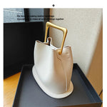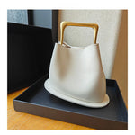 High-grade retro genuine leather bucket bag with wooden handle New irregular niche design bag casual all-matching