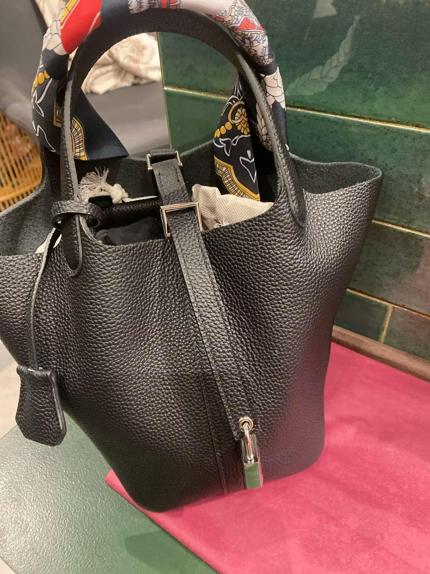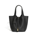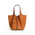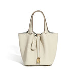 High-Quality Large Size Leather Bucket Bag Women's Handbag Premium Feel Basket Design Polyester Lining Urban Simple Style