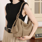 Leather Single Shoulder Bag Large Capacity Commuter Tote Bag Fashionable Underarm Bag Simple Style Vintage European Feel