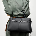 Luxury Leather Handbag Women's Commuter Platinum Briefcase Large Capacity Spring Summer Tote Bag Single Shoulder Strap City Chic