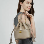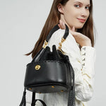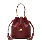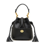 Luxury Top Layer Cowhide Bucket Bag Women's Genuine Leather Bag Tassel Niche Drawstring Single Shoulder Crossbody Bag