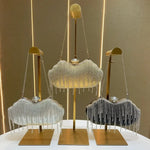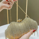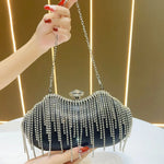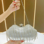 New Ladies Rhinestone Fringe Evening Clutch Bag Wedding Party Banquet Tote Bag Polyester Material Single Shoulder Strap