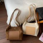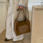 Trendy Spliced Large Capacity Women's Shoulder Bag Suede Crossbody Bag Commuter Bag Fashionable Multicolor PU Square Bag