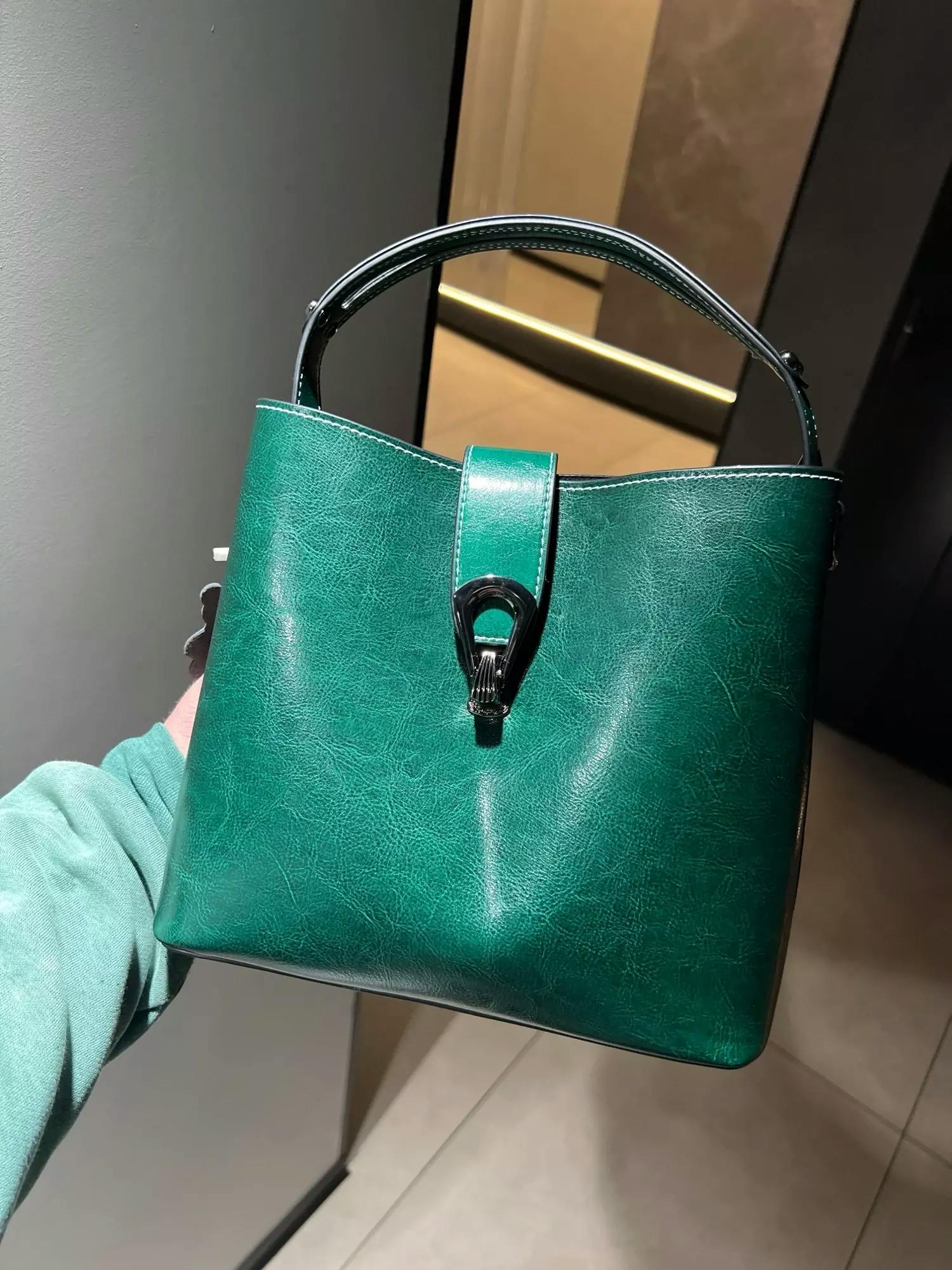 Urban Chic Genuine Leather Women's Bag Crossbody Lock Buckle Bag Luxury Minimalist Capsule Lock Clasp Handbag Shoulder Bag