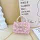 women's cotton and linen bow knot cute pearls square flip cover crossbody bag