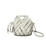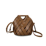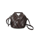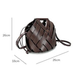 Women's Two-Layer Cowhide Leather Irregular Geometric Elegant Basic Classic Style Bucket Magnetic Buckle Straw Bag