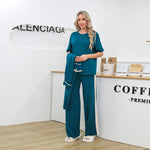 Autumn New European Women's Fashion Knitted Three-Piece Set Comfortable Warm Versatile Long Robe Color Block Casual Outfit