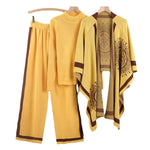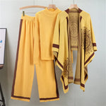 Autumn Winter Knitted Wide Leg Pants Sweater Shawl Three Piece Set Casual Loose Women Fashion Ensemble Pure Color Commute Style