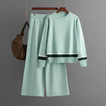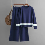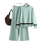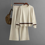 Autumn Winter New Style Color Block Knitted Wide Leg Pants Inner Wear Loose Slimming Striped Knitted Two Piece Set For Women