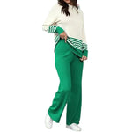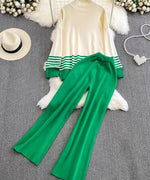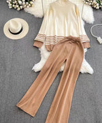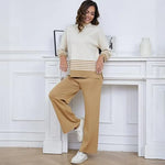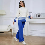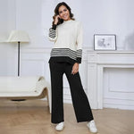 Casual Knitted Wide Leg Pants Two-Piece Set Loose Long Sleeve Striped Color Block Hoodie Suit Fashion