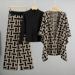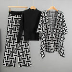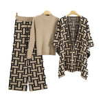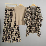 Elegant Autumn Winter Women's Fashion Sweater Set With Shawl High-End Feelings Geometric Pattern Casual Ensemble Long Sleeve