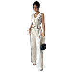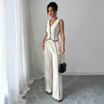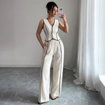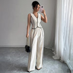 Elegant Button Up Vest Straight Leg Pants Set Women's Fashion Casual Ensemble Pure Color Spring Summer Trendy Commute Wear