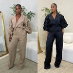 Pattern: Solid Color Sets Type: Leisure Suit Fabric Type: Woven Twill V,Woven Fabric Sleeve Length: Long Sleeve Sleeve Type: Regular Sleeve Pants Length: Full Length Style: Elegant Style,Temperament Commuter Craft: Collage/Splicing,Solid Color Gender: Women's Weight:...