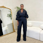 Elegant Casual Commute Suit European Style Pleated Sleeve Large Collar Two-Piece Women's Fashion Set Long Pants Elegant Wind
