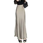 Elegant Fish Tail Half Skirt High Waist Draped A-Line Long Skirt Women's Spring Summer Autumn Silk Satin Wrap Body Skirt