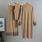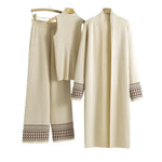 Elegant Knitted Open Cardigan Long Robe Wide Leg Pants Three Piece Set For Women Autumn Winter Fashion Casual Ensemble