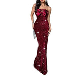 Elegant Long Evening Gown Sexy Strapless Dress Women's Fashion Autumn Winter High Waist Ankle-Length Polyester Ball Gown