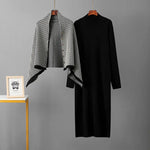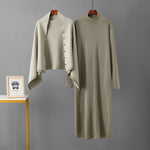 Elegant Long Sleeve Knitted Dress Women's Fashion Casual Outfit Two-Piece Set Slimming Shoulder Wrap Autumn Winter Ensemble