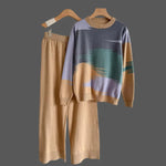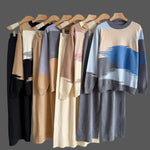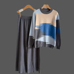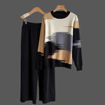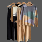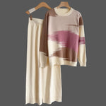 Elegant Long Sleeve Knitted Sweater Round Neck Loose Women's Fashion Casual Set With Wide Leg Pants Autumn Winter Two-Piece Set