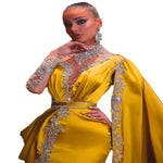 Elegant Long Yellow Sequin Dress Women's Euro-American Style Evening Gown High Waist Floor-Length Polyester Fiber Dress