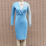 Elegant V-neck Long Sleeve Lace Patchwork Slim Fit Bodycon Dress European Style Fashion Women's Clothing One-piece Dress