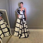 Fashionable Black White Strapless Evening Dress Style Print Backless Street Style Princess Skirt Dress