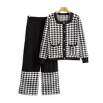 Fashionable Casual Women's Outfit Autumn Long Sleeve Plaid Two-Piece Set Comfortable Breathable Polyester Rayon Blend Fabric