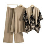 Fashionable Knitted Casual Set Women's Autumn Winter Loose Half High Collar Sweater Pants Shawl Three Piece Set Commute Style