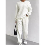 Fashionable Knitted Floral Embroidery Oversized Hoodie And Long Pants Casual Two-Piece Set For Women Autumn Winter Street Style