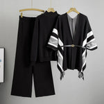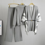 Fashionable Knitted Set For Women Autumn Winter Loose Casual High Collar Sweater Wide Leg Pants Three Piece Suit Abstract Pattern