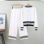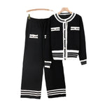 Fashionable Knitted Two-Piece Set Women's Open Cardigan Wide Leg Pants Casual Autumn Winter Outfit Elegant Commute Style