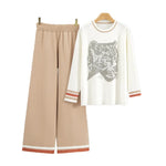 Pattern: Animal Pattern Sets Type: Leisure Suit Fabric Type: wool blend,Polyester,Viscose fiber Sleeve Length: Long Sleeve Sleeve Type: Regular Sleeve Pants Length: Full Length Style: Temperament Commuter,Commute style Craft: Hot Diamond Gender: Women's Weight: 940g...