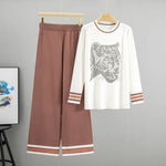 Fashionable Leopard Head Knitted Set Women Loose Fit Two Piece Sweater Autumn Winter New Arrival Glittering Commute Style Long Sleeve