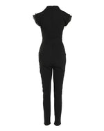 Fashionable One-Piece Suit European Women's Clothing Sleeveless V-Neck Waist Belt Pure Color Polyester Fabric Patchwork